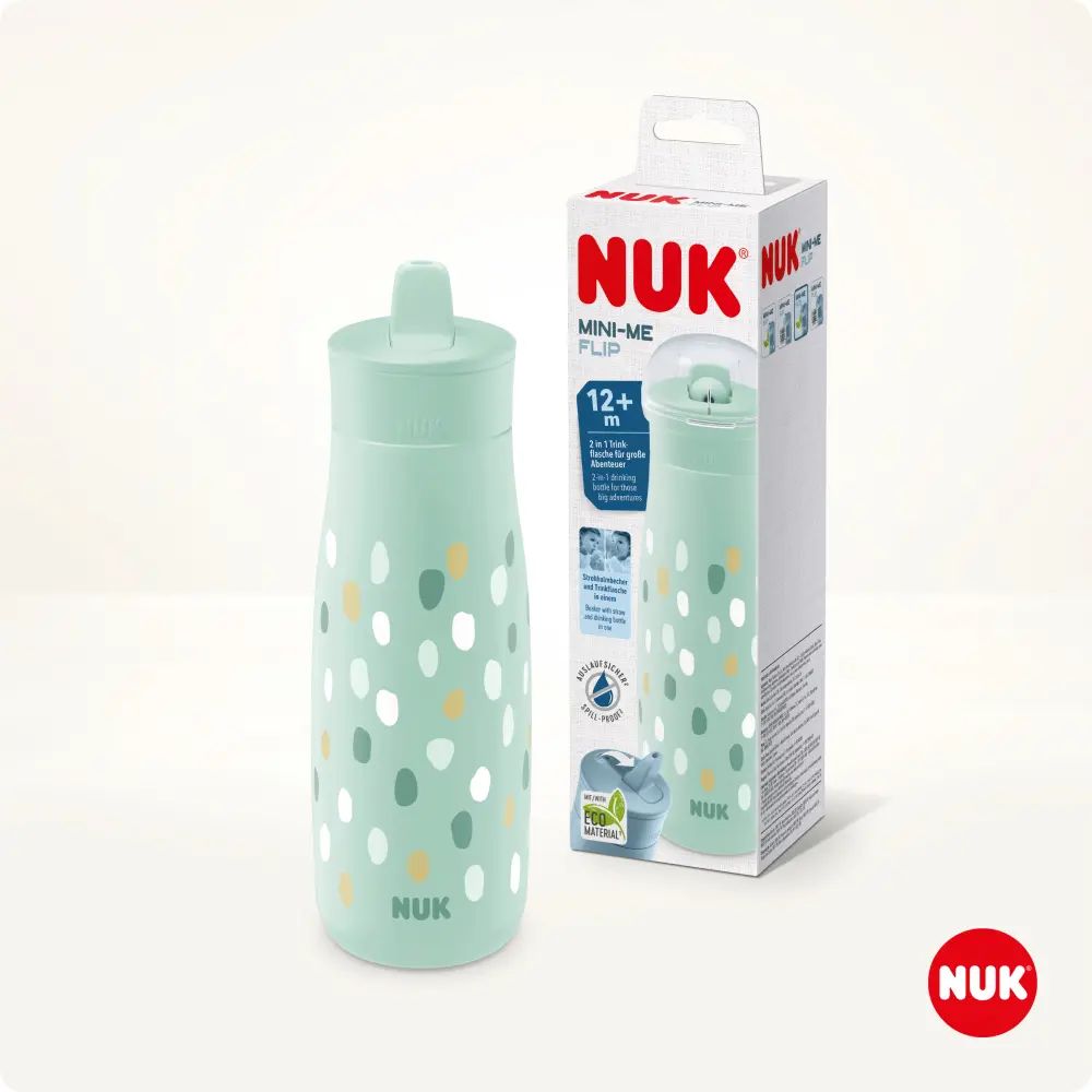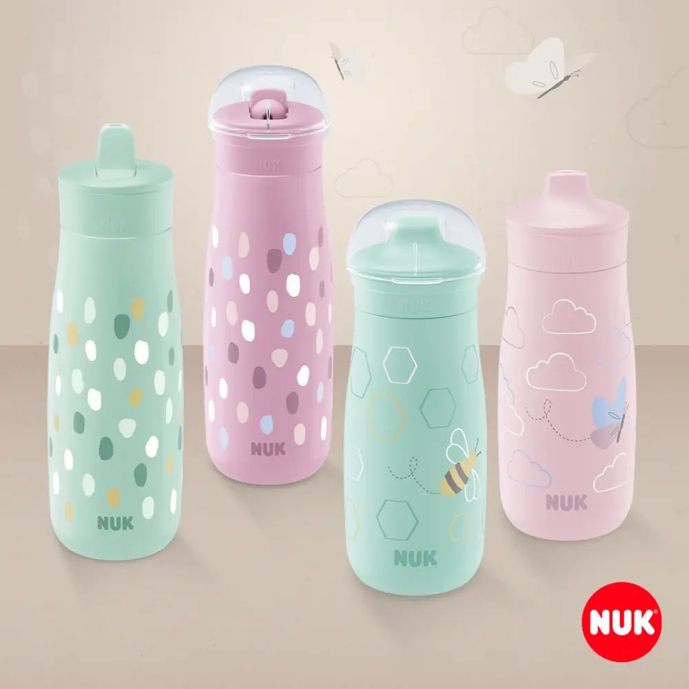 Questa tazza NUK MiniMe  è parte di un sistema che cresce con il bambino, offrendo la possibilità di scegliere tra diversi materiali e tipi di tappo, adattandosi così alle diverse fasi della crescita del bambino.