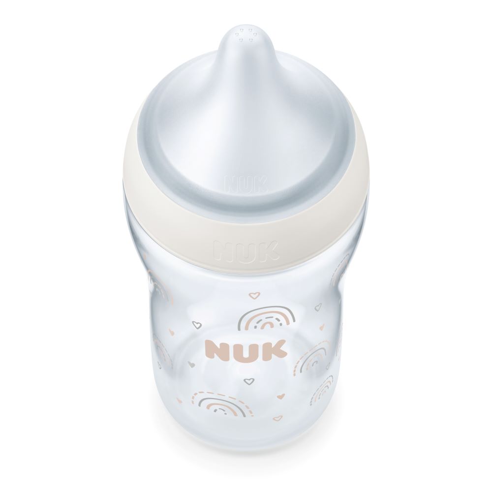 La tettarella del nuovo NUK Perfect Match è particolarmente morbida ed elastica, adattandosi delicatamente alle labbra e al palato del bambino. La sua forma simile al seno facilita una corretta posizione della bocca, permettendo un flusso di latte tranquillo e naturale per un'esperienza di alimentazione rilassata, molto simile all'allattamento al seno.