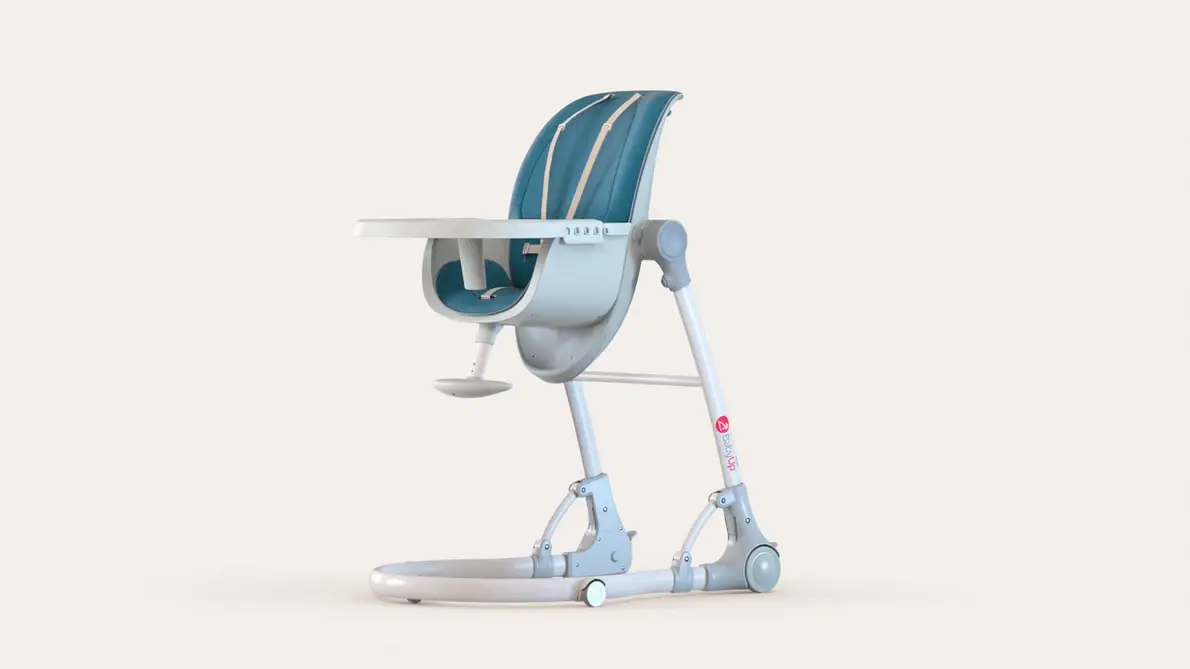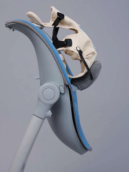 BabyUp si dondola naturalmente, riproduce rumori bianchi e può trasformarsi in un seggiolone, estendendo il suo utilizzo fino a 2 anni.