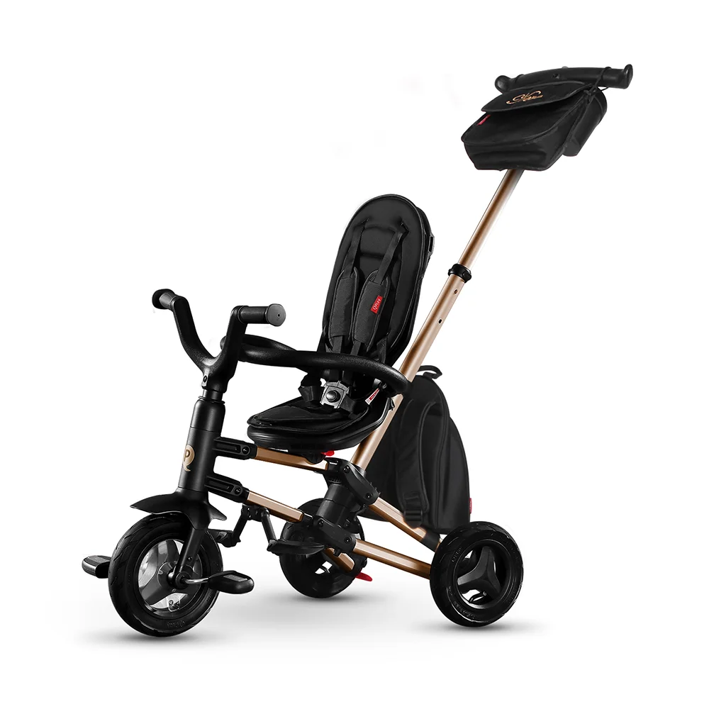 Triciclo 6 in 1 dal design di alta qualità ripiegabile e super compatto, con un telaio in alluminio facilmente che lo rende molto facile da trasportare e riporre. Il sedile può essere orientato fronte strada o fronte mamma, dando la possibilità di comunicare con i bambini faccia a faccia. Inoltre, lo schienale è regolabile per un maggiore comfort.