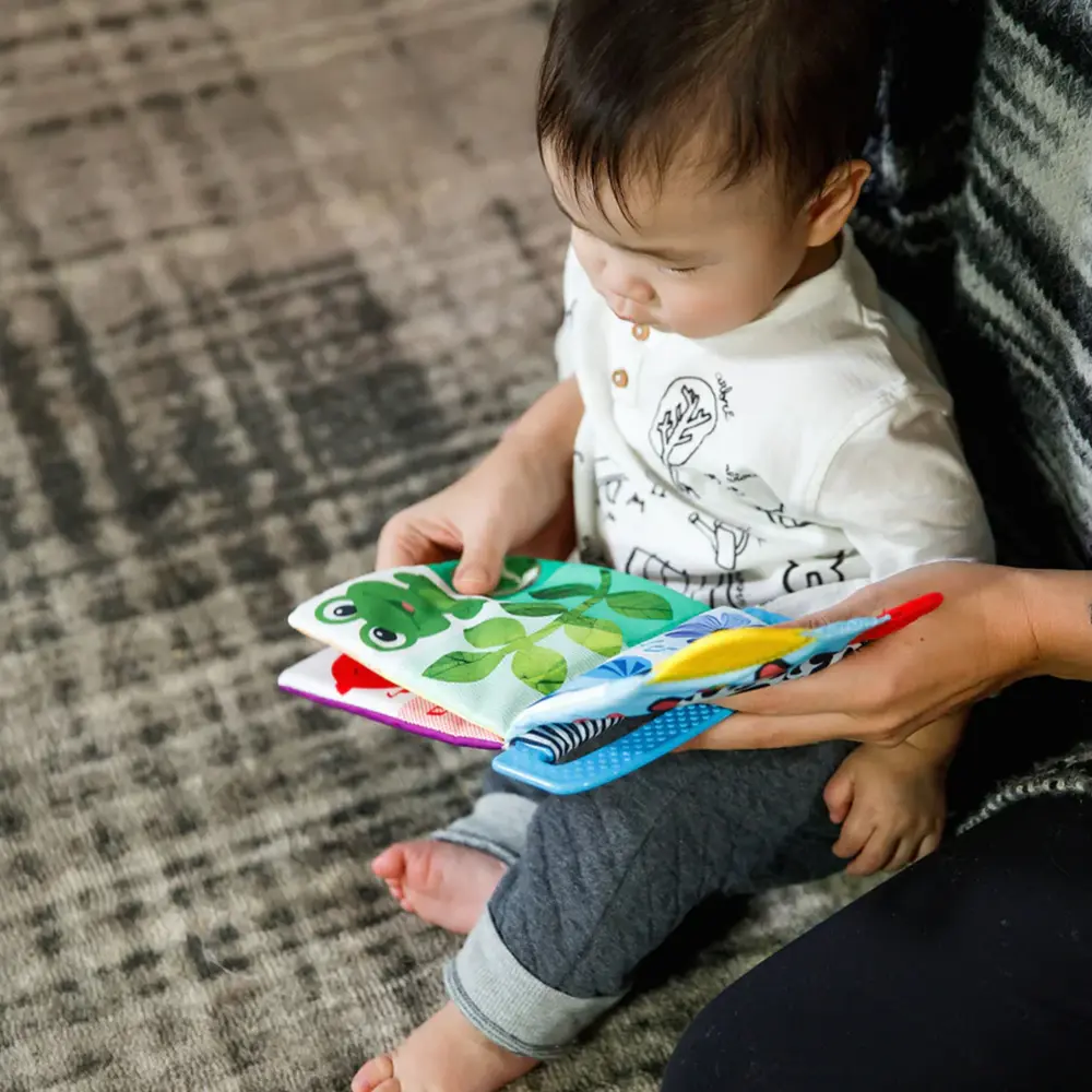 Il Baby Einstein Curious Explorers – Teether Book è un libro sensoriale e multiuso pensato per accompagnare i più piccoli nelle loro prime avventure cognitive e sensoriali. Il libro segue i personaggi Baby Einstein in un viaggio illustrato con immagini reali, stimolando la curiosità e lo sviluppo visivo del bambino.