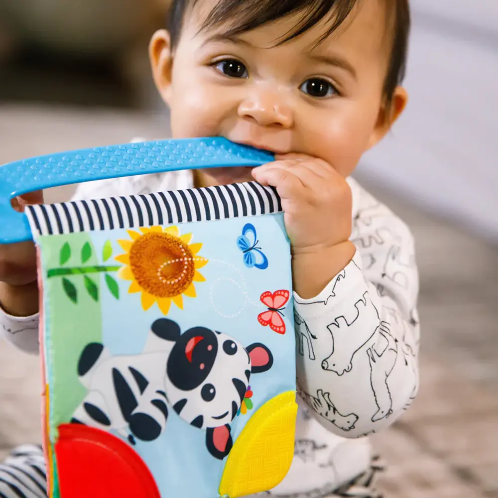 Dotato di angoli in plastica rigida con texture rilassanti, aiuta a massaggiare le gengive durante la dentizione. Le pagine morbide sono facili da sfogliare anche per le manine più piccole, mentre la comoda maniglia integrata permette di portarlo ovunque: in passeggino, in auto o a casa.
