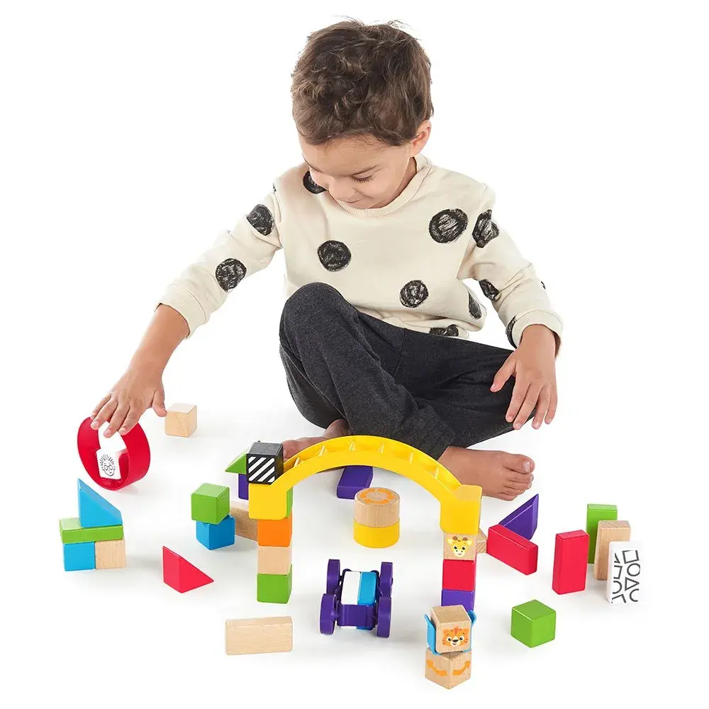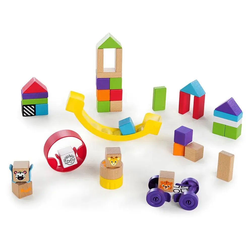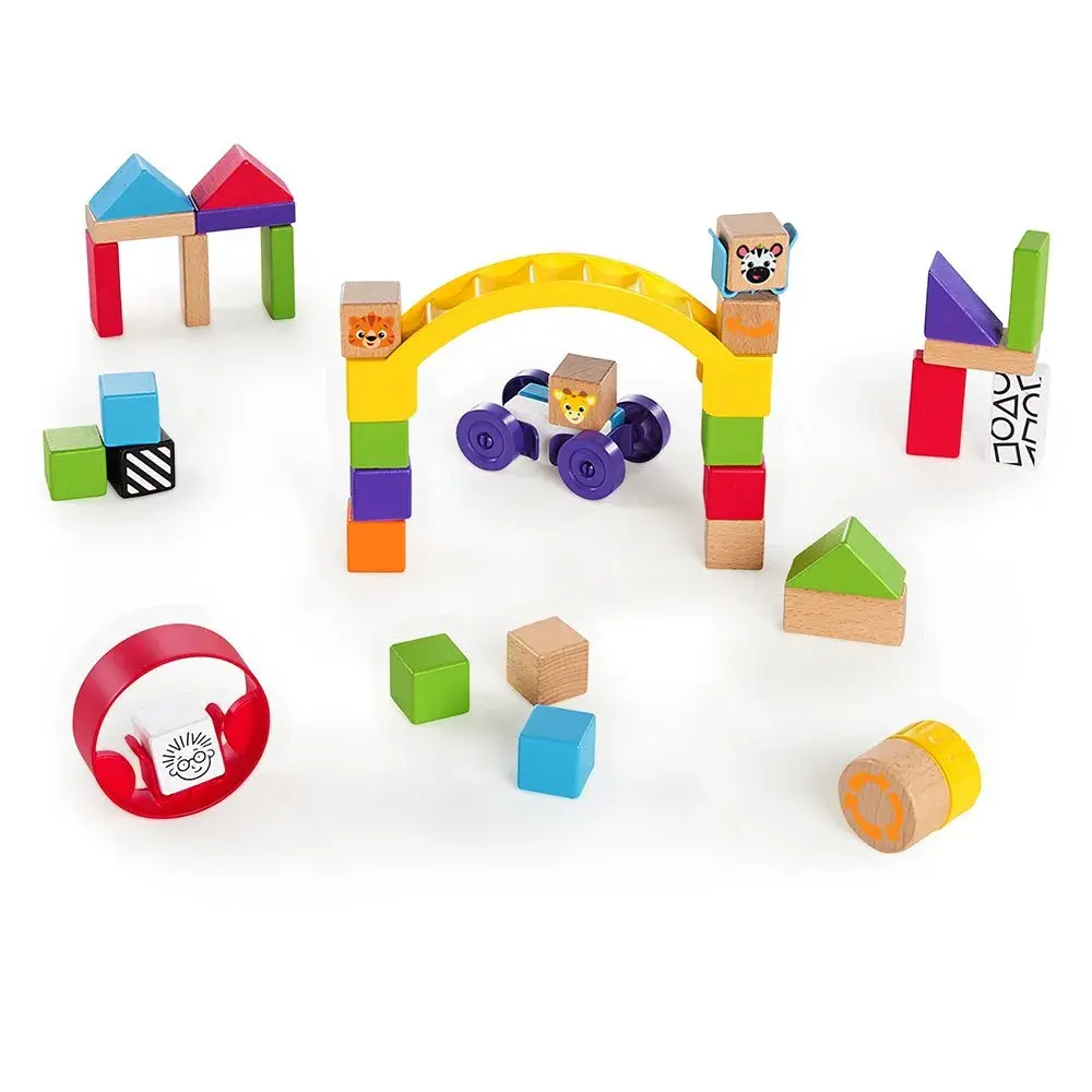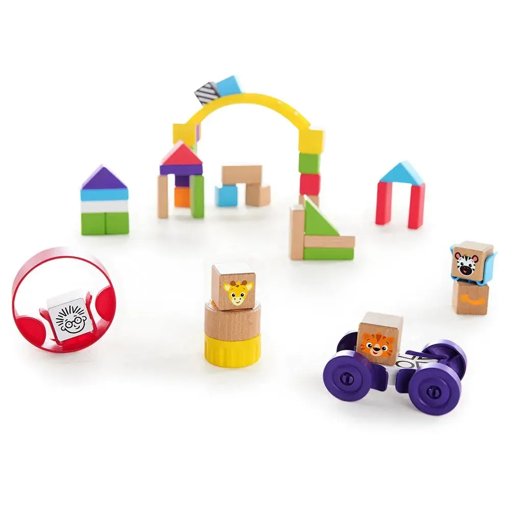 Con il Baby Einstein Curious Creator Kit, il tuo piccolo potrà dare libero sfogo alla sua immaginazione e sentirsi un vero ingegnere in erba! Questo gioco di costruzione in legno è ricco di forme, blocchi colorati e gadget interattivi progettati per stimolare la creatività e le abilità motorie fini del bambino.