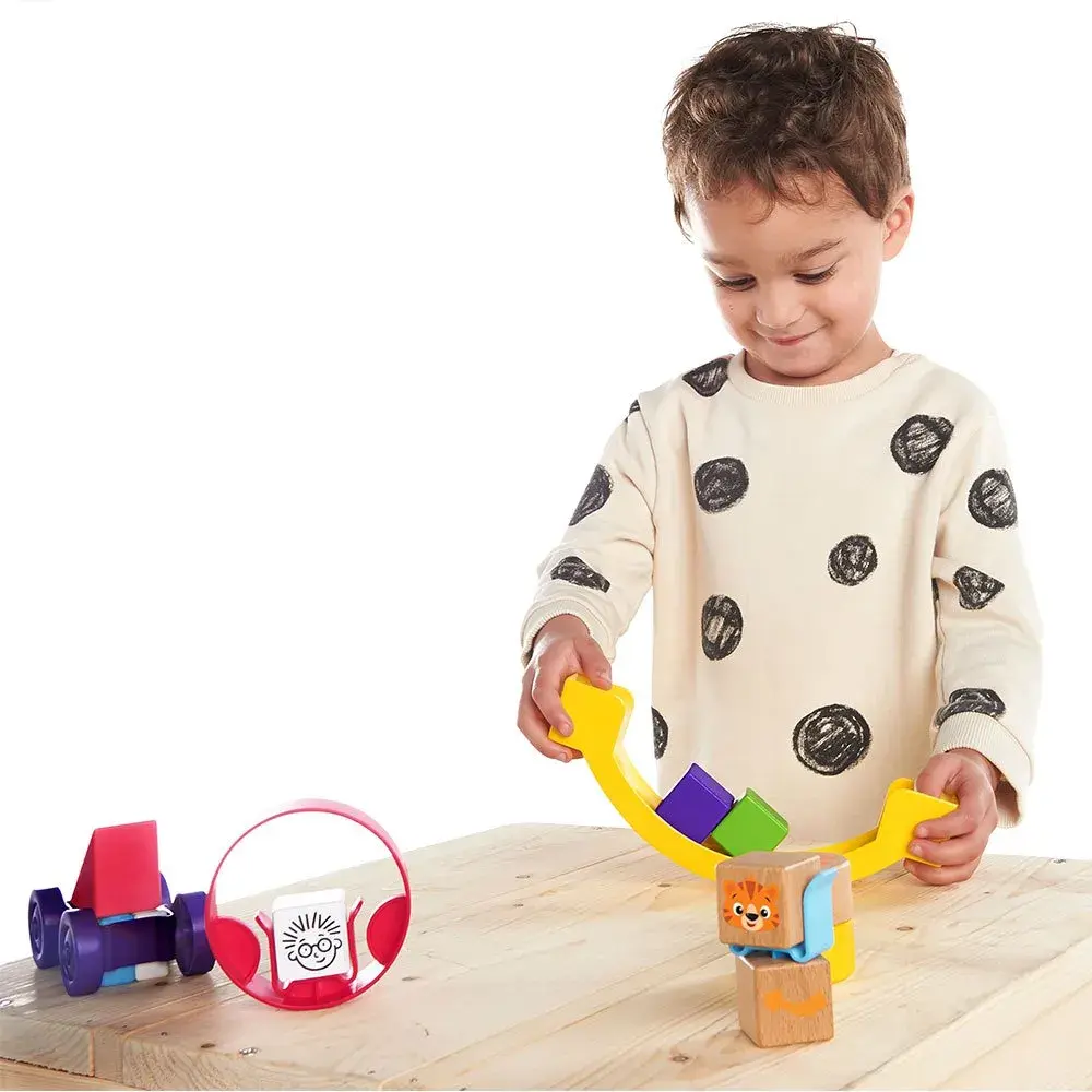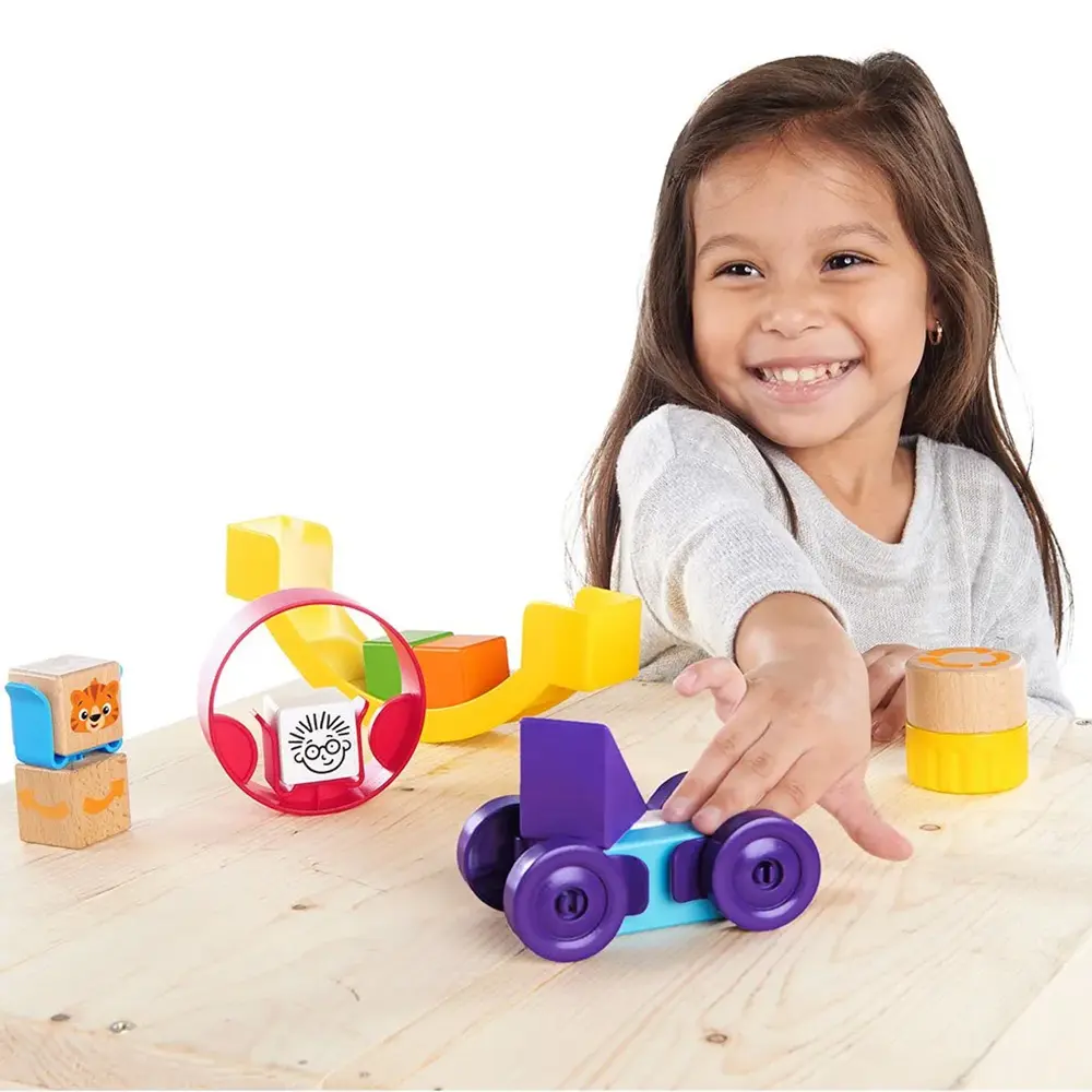 Perfetto per costruire torri altissime, auto da corsa o strutture fantasiose, ogni elemento del kit è progettato per essere sicuro, facile da manipolare e incredibilmente divertente. I pezzi speciali come la molla rotante o la ruota dei blocchiaggiungono movimento e sorpresa, trasformando ogni creazione in un’esperienza multisensoriale.