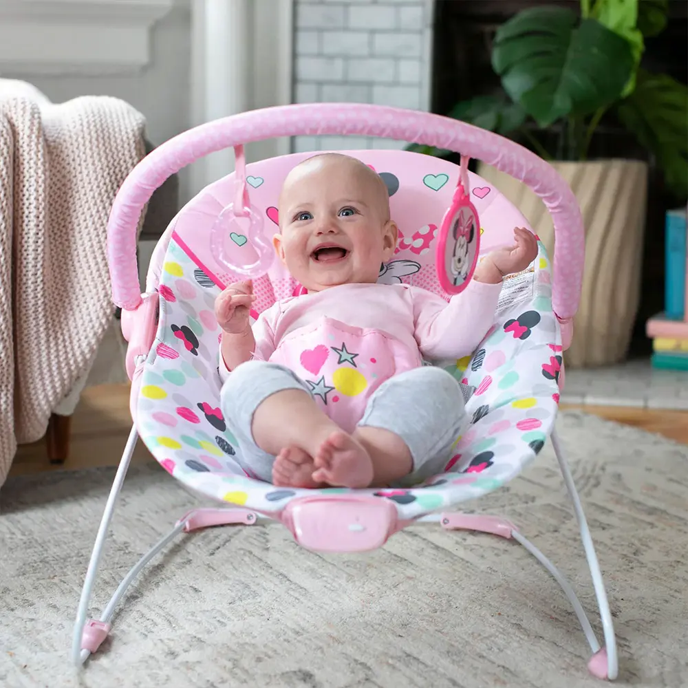 La magia Disney entra in casa tua con la Sdraietta Vibrante Minnie Mouse di Bright Starts. Con un design dolcissimo in rosa chiaro a pois e decorazioni ispirate all'amatissima Minnie, questa sdraietta è pensata per coccolare, calmare e intrattenere il tuo piccolo sin dai primi giorni.