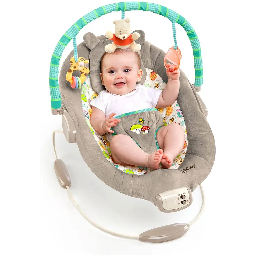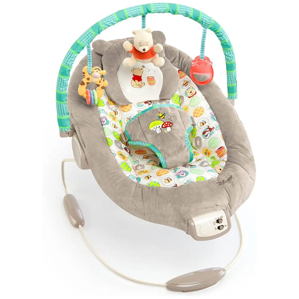Grazie alle vibrazioni calmanti e alle 7 melodie rilassanti con volume regolabile, è la soluzione perfetta per accompagnare il neonato nei momenti di tranquillità. L’arco giochi, facilmente rimovibile con una mano, propone 3 adorabili giochi sospesi: il peluche Winnie the Pooh, Tigro e un barattolo di miele per stimolare vista e tatto.