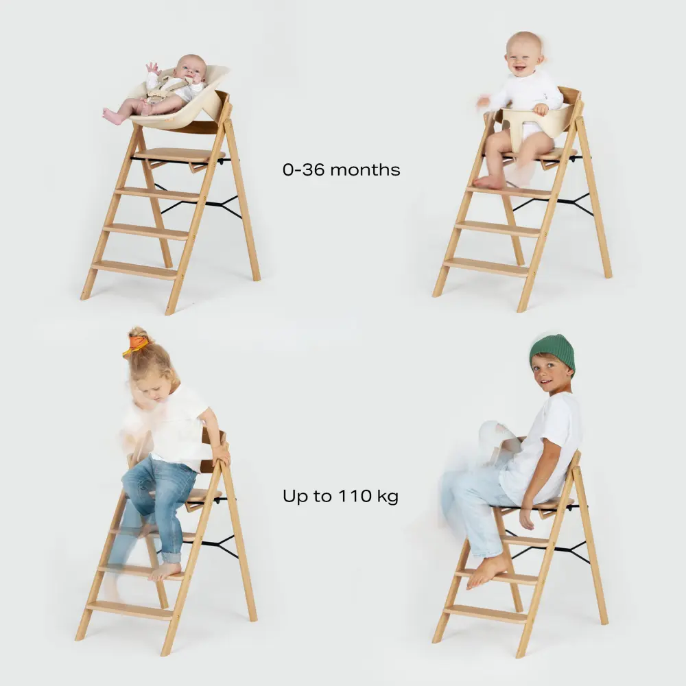 Realizzato in legno massello di rovere o faggio, il KAOS KLAPP unisce estetica scandinava e qualità artigianale, per un seggiolone dal design caldo e senza tempo.